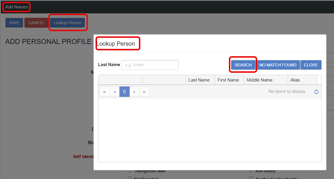 - If no match is found, click ’No Match Found – Close and Save New Person’ and your new person will be saved.