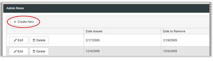To create a new item to be displayed under “News”, click on the “Create New” button.