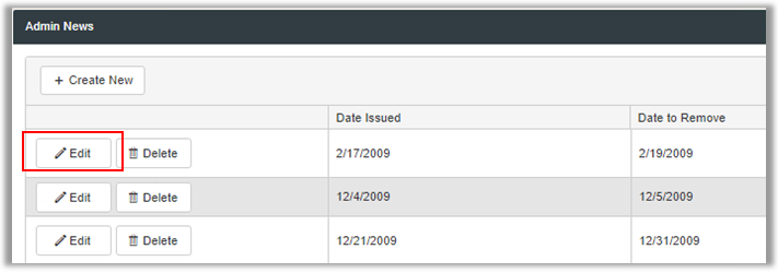 Click on the “Edit” button on the same row as the news item/story you wish to edit.