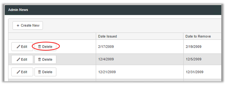 If you want to remove an existing news story, click on the “Delete” button on the same row as the news item you want to delete.
