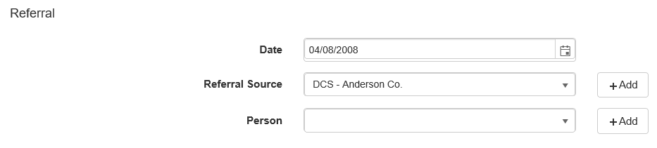 Enter the agency referring the client for treatment. Select the agency that made the referral from the “Referral Source” drop down list.