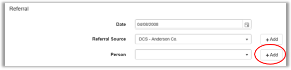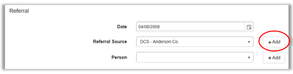 To add a new Agency, click on the “Add” button next to the Referral Source field.