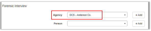 Enter the agency providing the Forensic Interview. This may be your CAC or another agency if you are using a different one at your center.