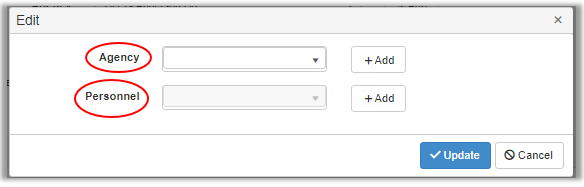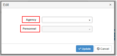 A dialog box will appear where you can enter more information about the observer. Select the “Agency” the observer is from and the individual’s name from the “Personnel” drop down list.