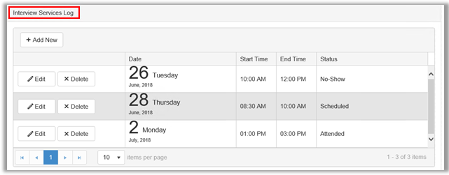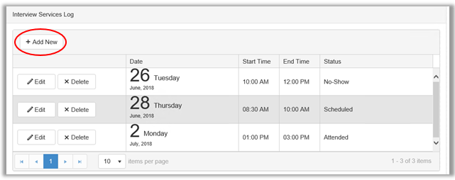 To add an Interview Record, click on the “Add New” button in the Interview Records table.