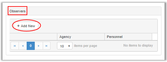 To add an observer to the Forensic Interview, go to the Observers section towards the bottom and click on the “Add New” button.
