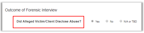The Forensic Interview section provides a record of key information about who conducted and/or participated in the Forensic Interview activities and when.