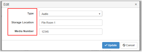 A dialog box will come up for adding more information about the Interview Record. Select the “Type” of record from the dropdown list, enter the “Storage Location” and type in the “Media Number” to catalogue the record, if applicable.