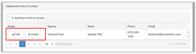 To make changes to a point of contact record, select the “Edit” button next to the record in the table.