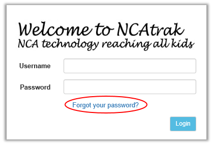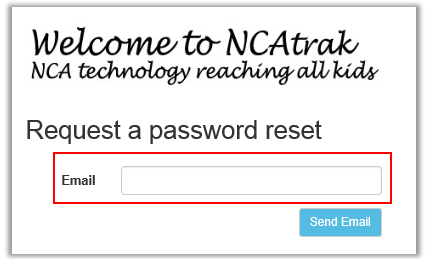 NOTE: In order for the password reset feature to work, the user must have a unique email address associated to his/her NCAtrak account. This means the email address is listed in the user’s NCAtrak profile.