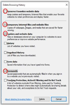 Figure 8. Delete browsing history check boxes