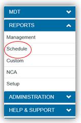 Select “Schedule” from the “Reports” drop down menu on the left side of the page.