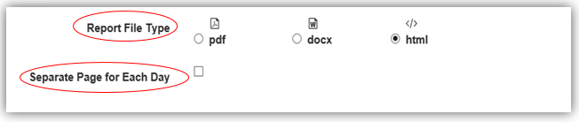 Figure 5. “Report File Type” and “Separate Page for Each Day” fields