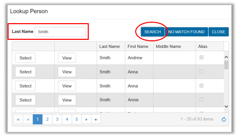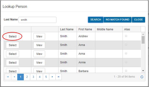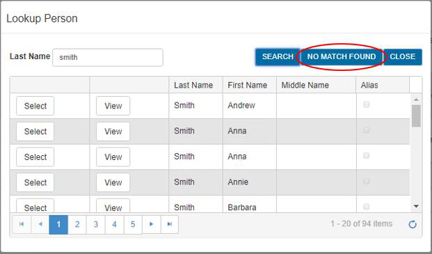 If you cannot find a match to the person you want to add to the case, click on the “No Match Found”
