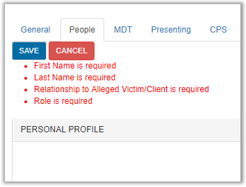 IMPORTANT: When adding a person to a case and you are entering details in the person’s Personal