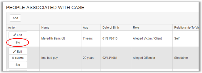 To view a person’s information, locate the person in the list and click on the “Bio” button in the