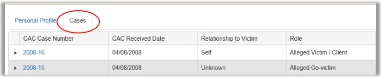 To view a list of all of the cases the person is associated with, click on the “Cases” tab.