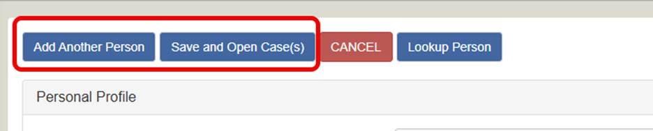 Step 5: Once the information is added to create the profile or if the profile is loaded from an existing profile, you will have an option to add other people or save and open the case if there are no other profiles or people to add to the case.