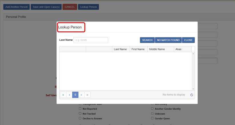 Step 2: Use the Lookup Person Feature to see if a profile for the person already exists. There should only be one profile for people added or created in cases.