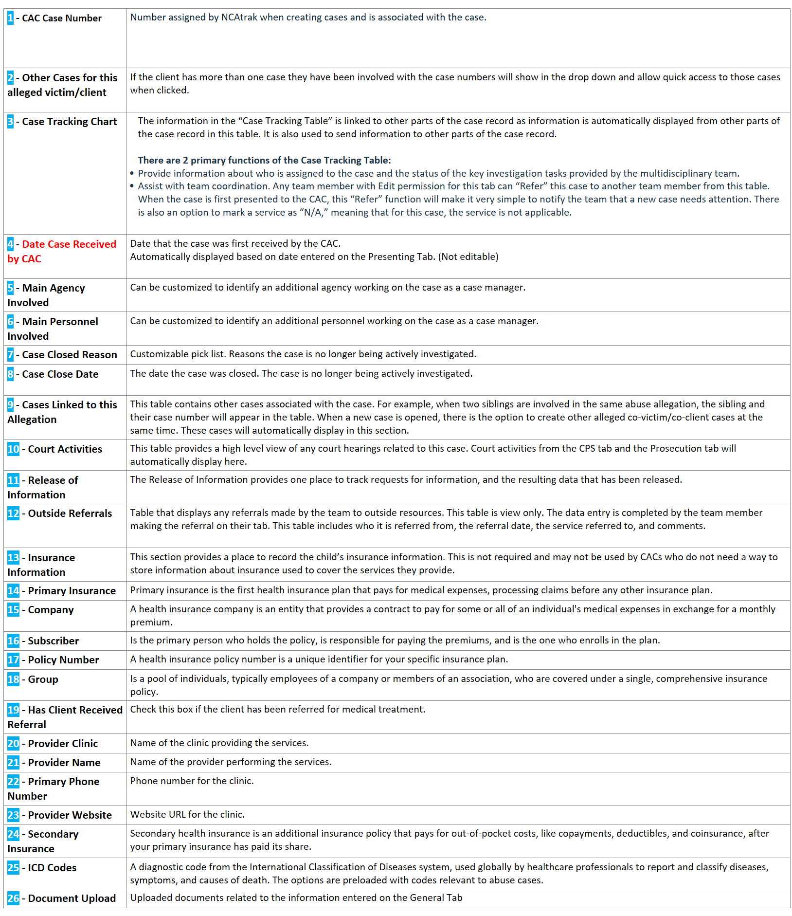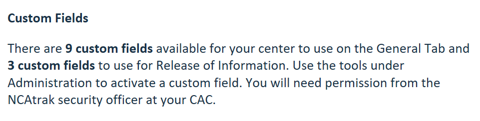 The NCAtrak Field Guide provides the definitions for default fields located within NCAtrak.